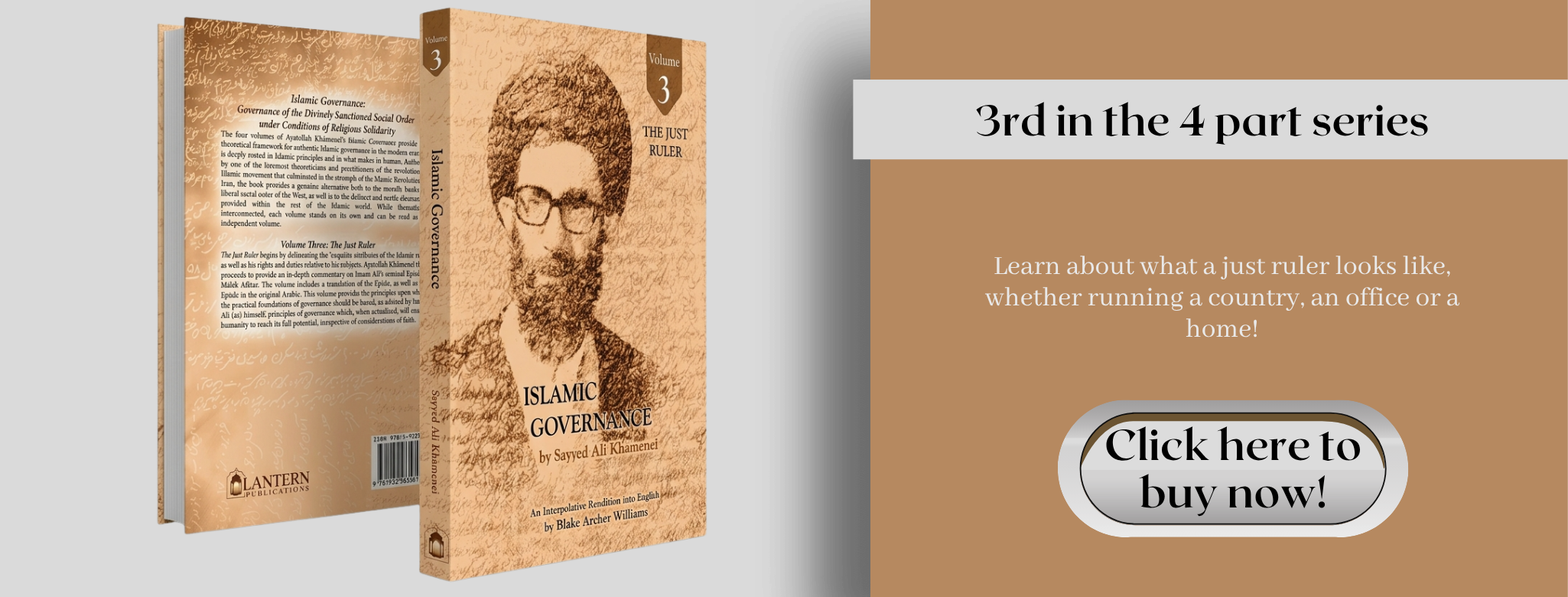 The four volumes of Ayatollah Khāmeneī’s Islamic Governance provide the theoretical framework for authentic Islamic governance in the modern era that is deeply rooted in Islamic principles and in what makes us human. Authored by one of the foremost theoreticians and practitioners of the revolutionary Islamic movement that culminated in the triumph of the Islamic Revolution in Iran, the book provides a genuine alternative both to the morally bankrupt liberal social order of the West, as well as to the defunct and sterile alternatives provided within the rest of the Islamic world.